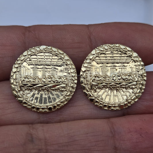 Real 10k yellow Gold Round Nugget Last Supper Earrings