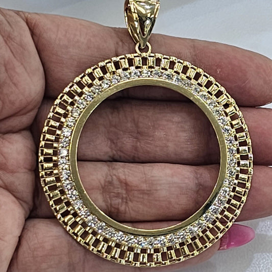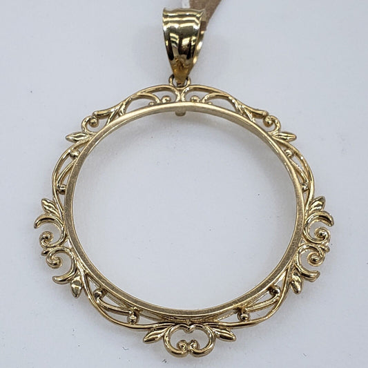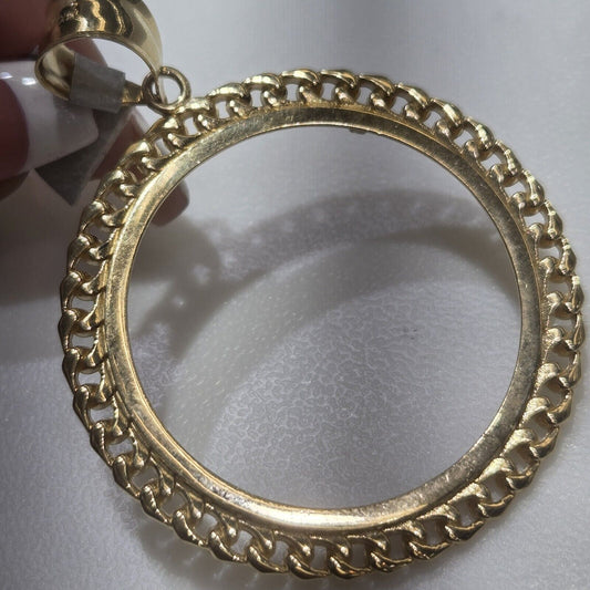 solid 14k yellow gold 50 pesos centenario Coin Frame pendant bezel