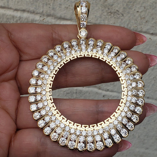 14k solid gold 50 pesos centenario Coin Bezel Frame pendant baguette greek key