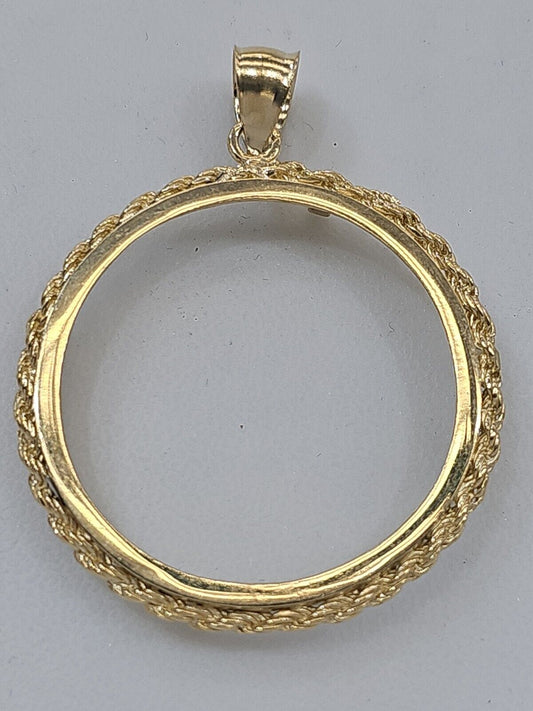 solid 14k yellow gold 50 pesos centenario Coin Bezel Frame pendant Rope Design