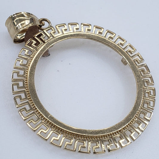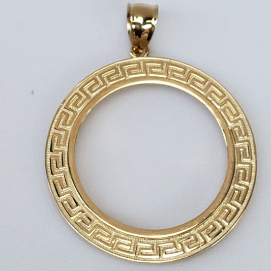 14k solid gold 4 Prong 50 pesos centenario Coin Bezel Frame pendant greek key