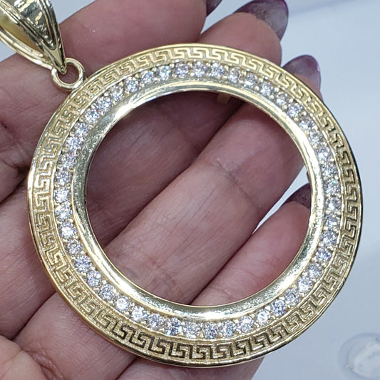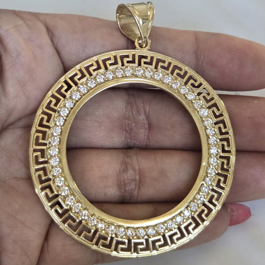 14k solid gold 50 pesos centenario Coin Bezel Frame pendant greek Key