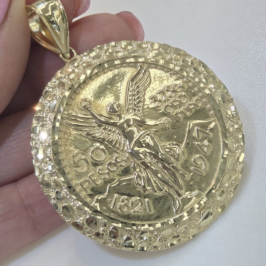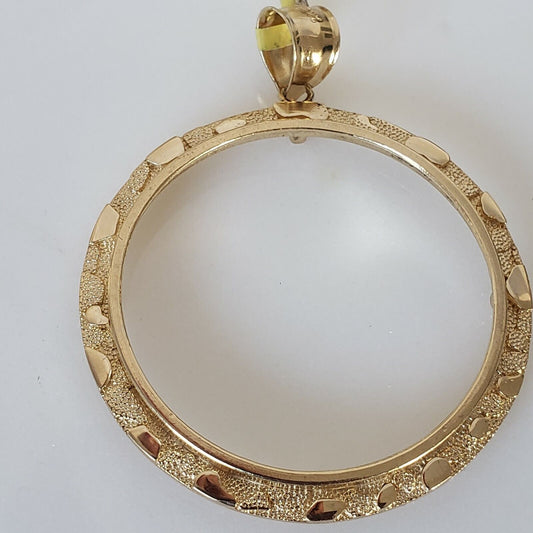 solid 14k yellow gold 50 pesos centenario Coin nugget Bezel Frame pendant