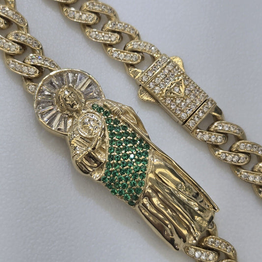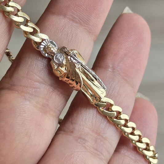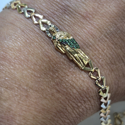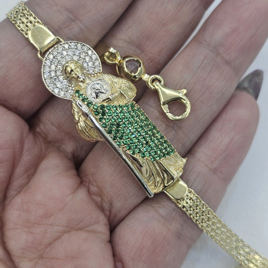 Big 14k Gold Saint Jude judas monaco bracelet 8 inches long 2 tone 3D Green