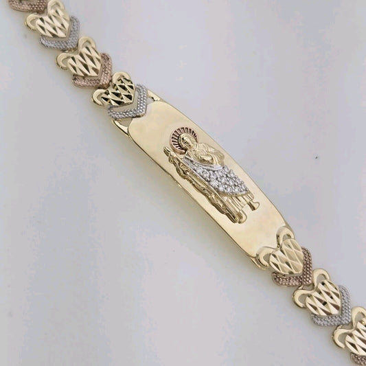 14k Gold Saint Jude judas monaco bracelet 8.50 inches long 3 tone 3D