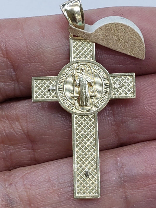 Big 14k Solid Gold Saint Benedict San Benito jesus Cross Pendant Charm 2 sided 2
