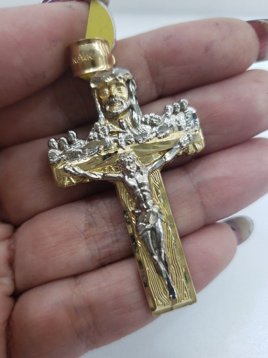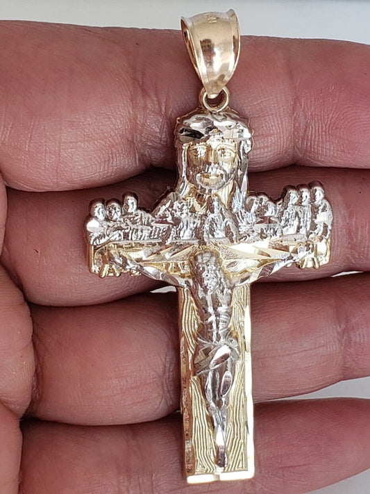 Solid big 10k Gold Jesus Crucifix last supper Cross Pendant 2.50" white yellow