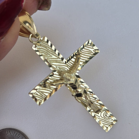 10k Yellow Gold Jesus Crucifix Nugget Cross Pendant 2.30 inch long Diamond Cut