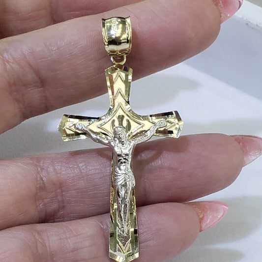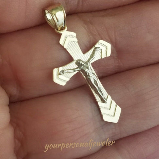 Solid 14k 3 color Gold Jesus Crucifix Cross Pendant charm 1.30 inches long