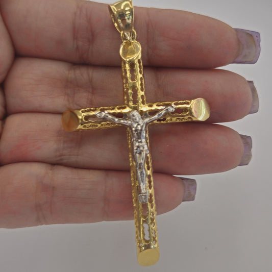 Big Two tone 14k Gold Jesus Crucifix Cross Pendant 2.50 inches long