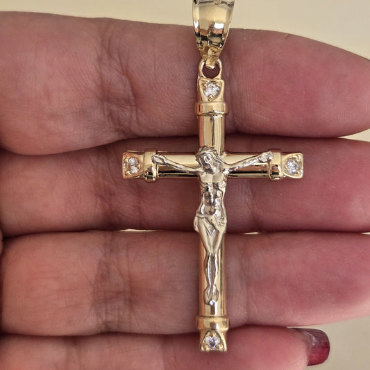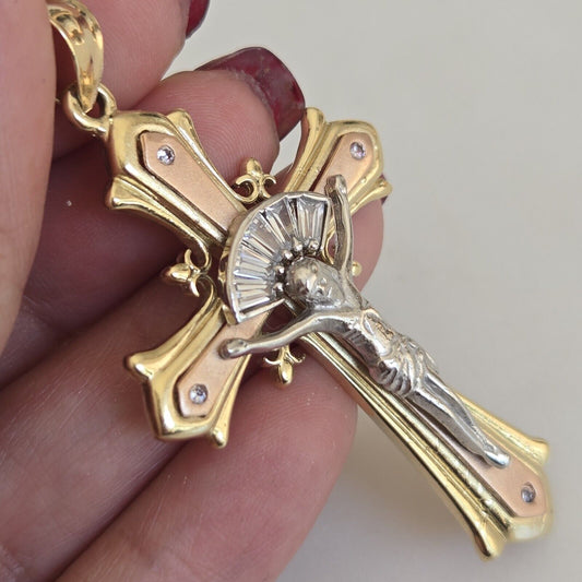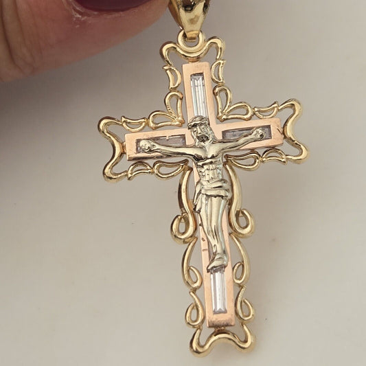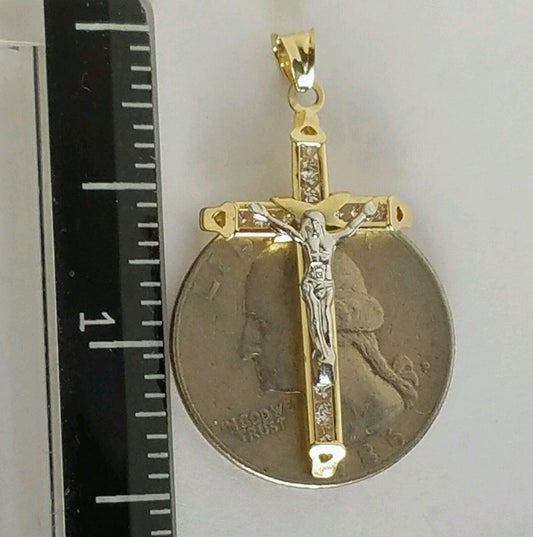 14k yellow white Gold Jesus Crucifix Cross Pendant charm 2.1 inches long