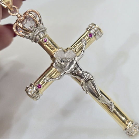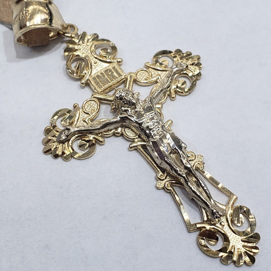 Big INRI Two tone 10k Gold Jesus Crucifix Cross Pendant 2 inches long