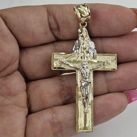 10k Solid Gold virgin Mary Cross Jesus Crucifix Pendant 2.50 Inches Long