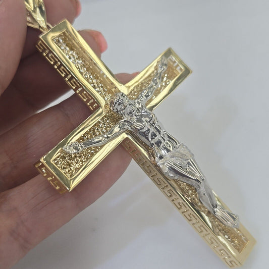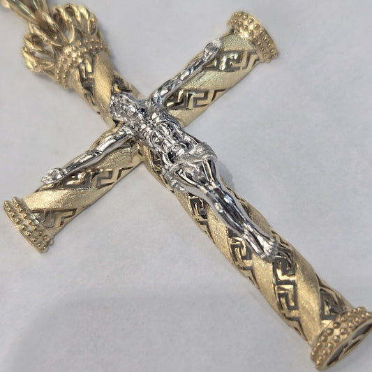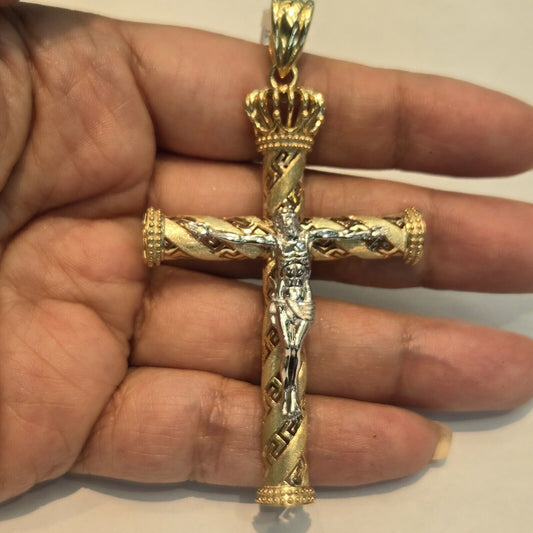 Big Solid 14k Gold Jesus Crucifix Cross Pendant 4 Inches Long Greek Key
