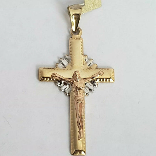 14k yellow gold Jesus crucifix cross pendant 1.55 inches long 3 tone