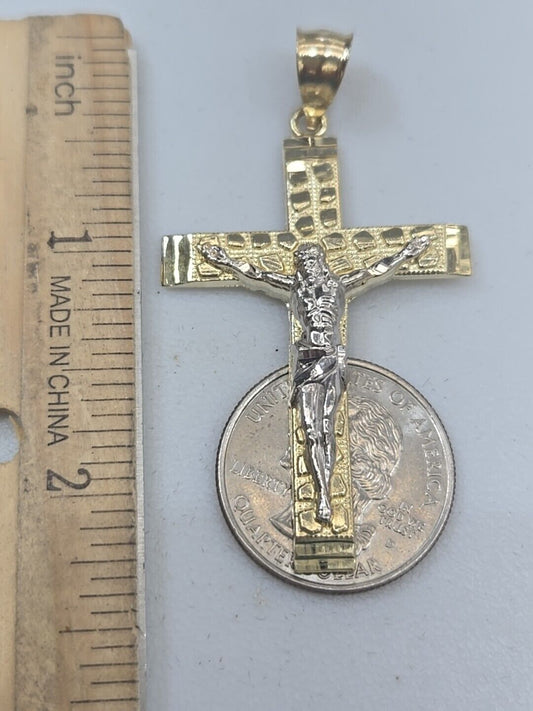 Big 10k Gold Jesus Crucifix Cross Pendant Charm 3.1 inches long white yellow