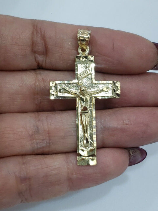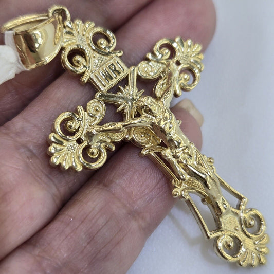 Solid 10k yellow Gold Inri Jesus Crucifix Cross Pendant 2.50 inches long