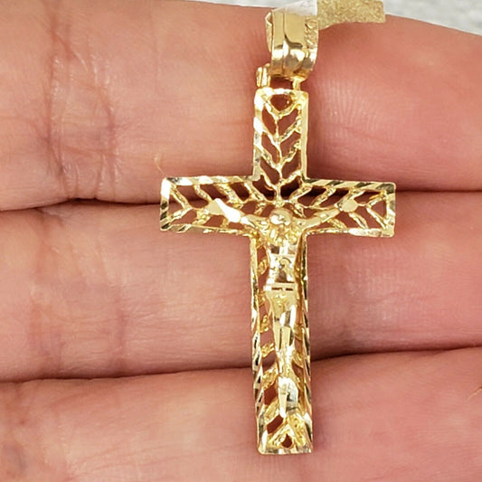 Solidc14k jesus crucifix cross pendant charm 1.40 inch long diamond cut