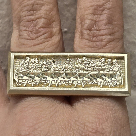 10k yellow Gold Last Supper double 2 finger knuckle bar Ring Siz 9 9.5
