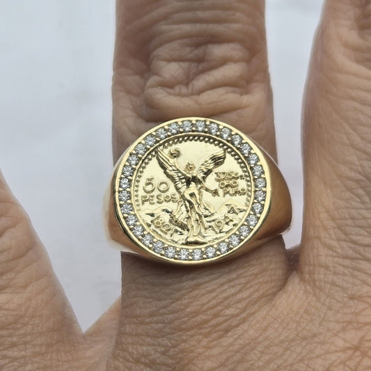 solid 14k Yellow Gold Cross 50 Pesos Centenario Ring Size 8 9.5 10 11 12