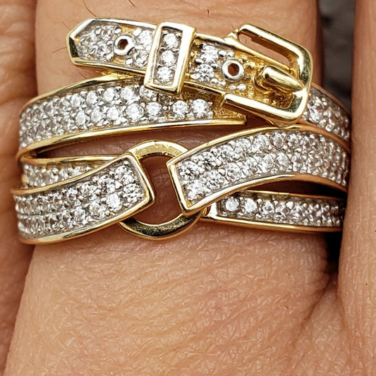 Real 14k gold Belt Buckle wide ring Woman's man made 1.5 carat Size 7