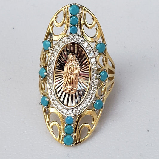 Wide Real 14k Gold virgin Mary guadalupe Ring