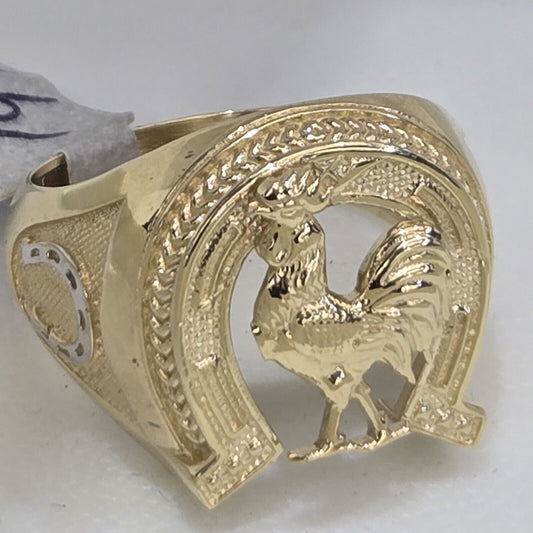 solid 14k Yellow Gold Good Luck HorseShoe Rooster Ring Size 9 10 11 12