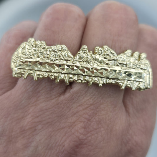 10k yellow Gold Last Supper double 2 finger knuckle Ring
