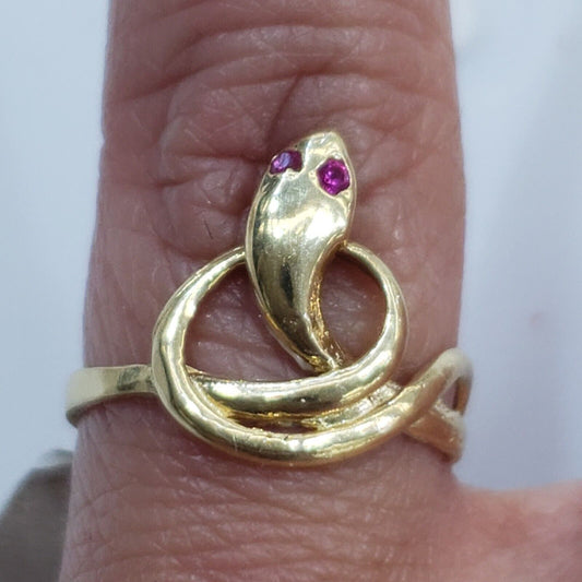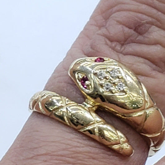 14k yellow gold diamond cut snake Ring Size 5 6 7.5 8 9 red eye