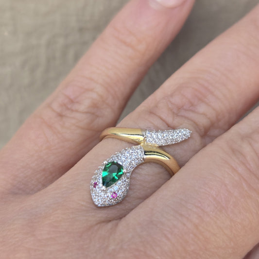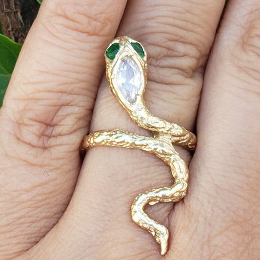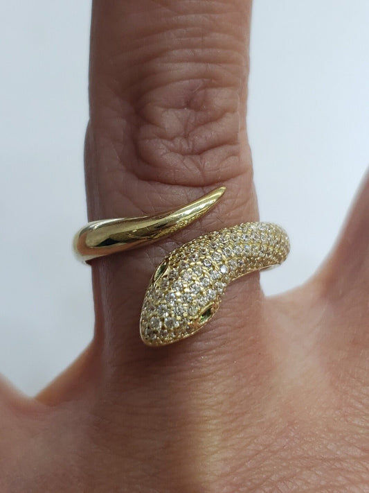 Solid 14k yellow gold snake Ring Size 5 6 7 8 9 green eye