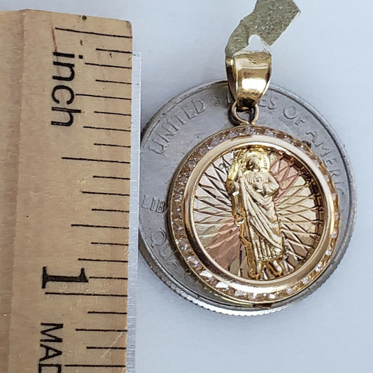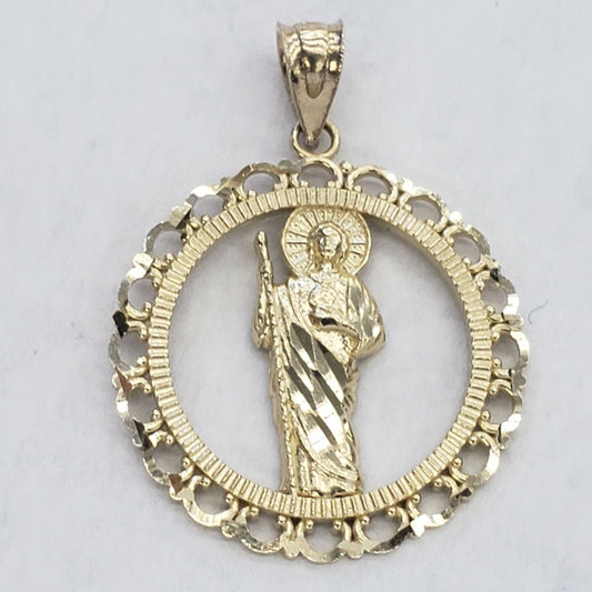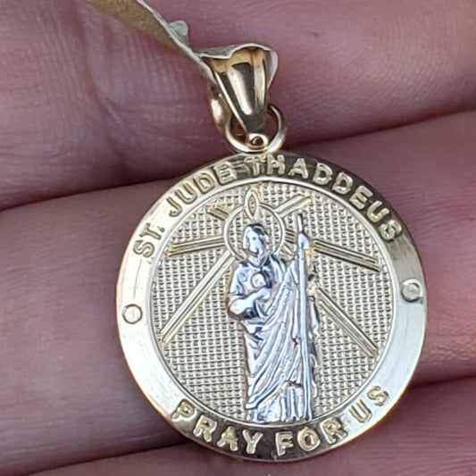 14k yellow Gold saint jude judas pendant 1.25 inch round diamond cut
