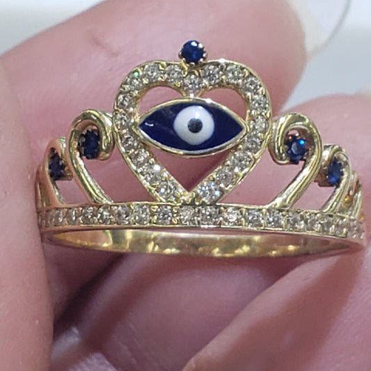 Solid 14k Yellow Gold blue eye tiara ring size 5 6 7 8 9 protector lucky