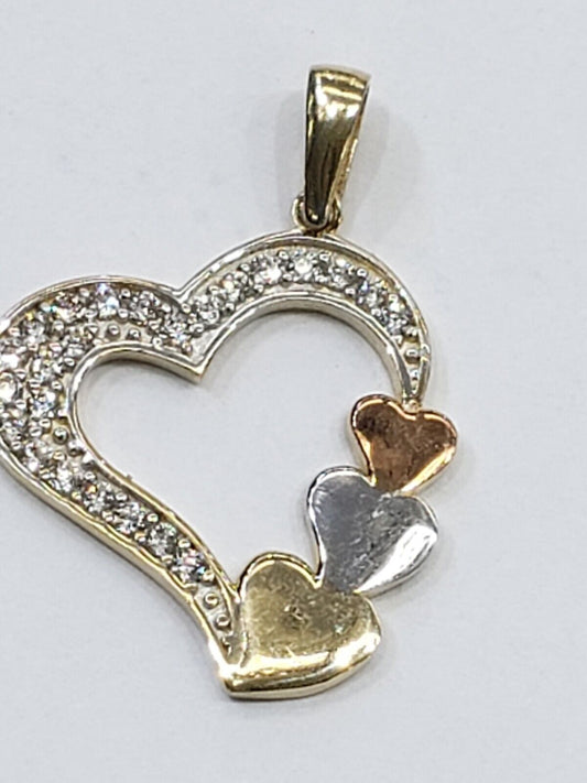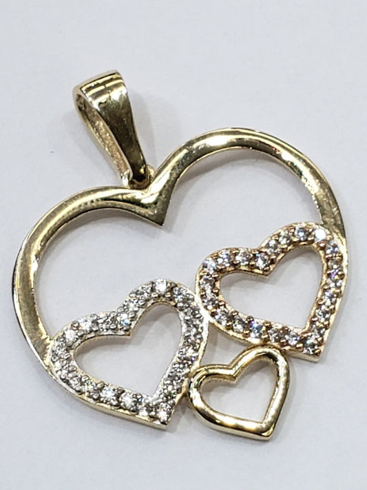 Solid 14k Yellow white rose Gold 3 Hearts love Pendant Charm 1 inch long