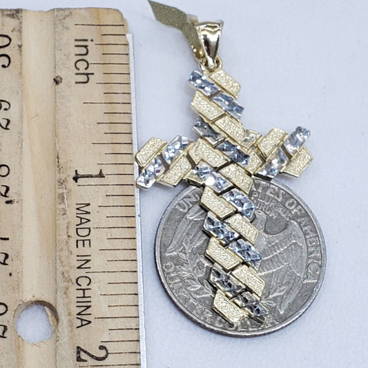 Solid 14k yellow White Gold Cross Pendant charm 1.85 Inches Long 2 Tone