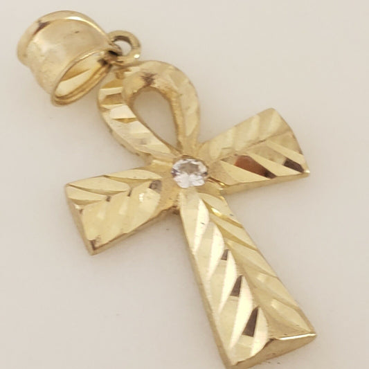 10k yellow Gold diamond cut Egyptian Cross ankh Pendant 1.50 inch long