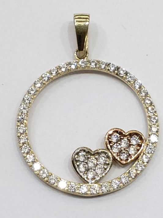 14k Gold 2 Hearts round Pendant Charm 1 " long forever eternity love