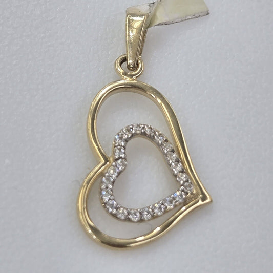 Solid 14k Yellow Gold Heart Pendant Charm 1 inch long