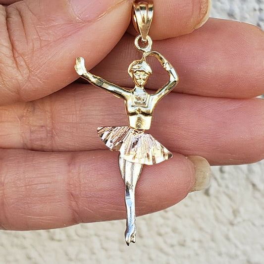 14k solid Yellow white rose gold ballerina Pendant charm 1.60 long movable