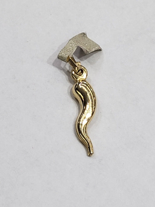 14k yellow Gold lucky itanlian horn good luck charm pendant cornicello 1 "