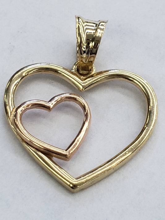 14k real solid Yellow Gold Hearts love Pendant Charm 1 inch long