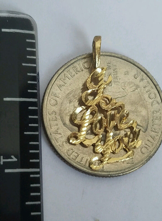 14k yellow gold diamond cut I love you pendant charm gift 1 inch long