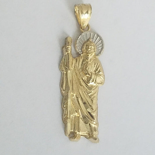 10k Yellow white Gold Saint Jude Pendant charm 1.35 inch Long
