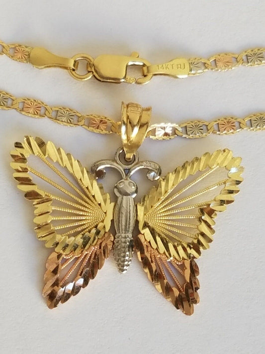 14k yellow white rose gold butterfly pendant