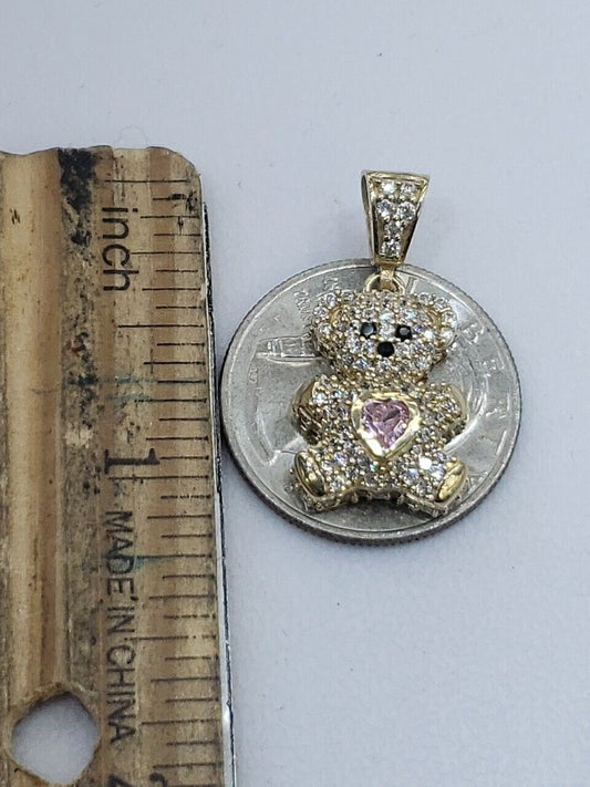 3D 14k Gold teddy bear Pendant Pink Heart