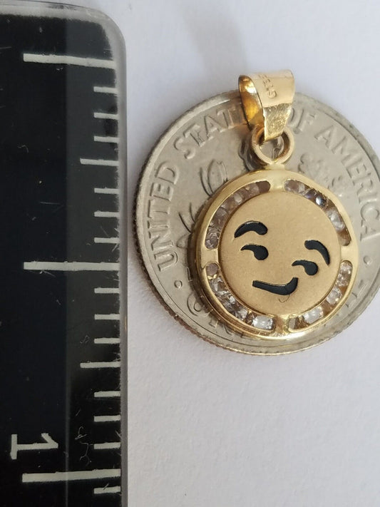 Small Solid real 14k yellow gold emoji Smirking face pendant charm .65" lng