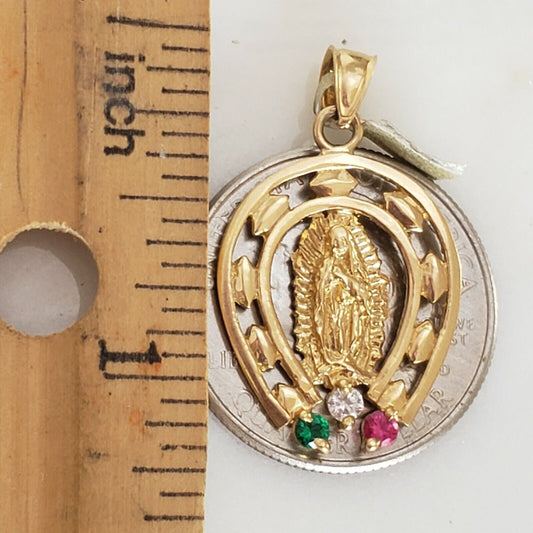 14k gold horseshoe lucky virgin Mary Guadalupe pendant charm 1.20" Mexico