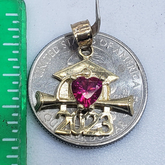 solid 14k Gold 2023 graduation cap diploma heart Pendant charm .95" lng