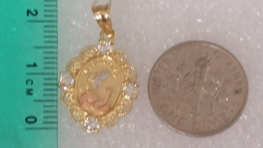 3 color 14k white rose yellow gold Baptism Pendant charm white round stones