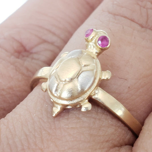 Solid 14k gold lucky good luck turtle ring size 56789