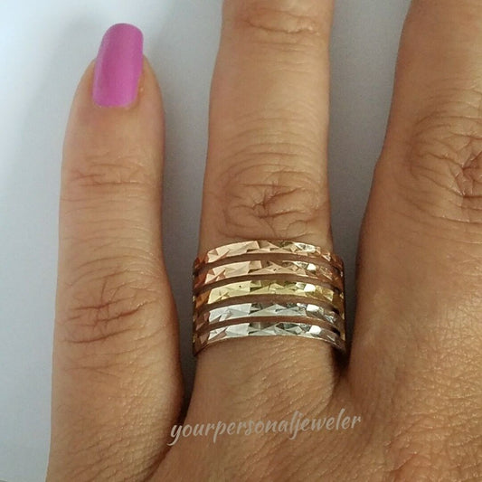 Solid real 14k Yellow white rose Gold 5 bands semanario wide ring S 8.5